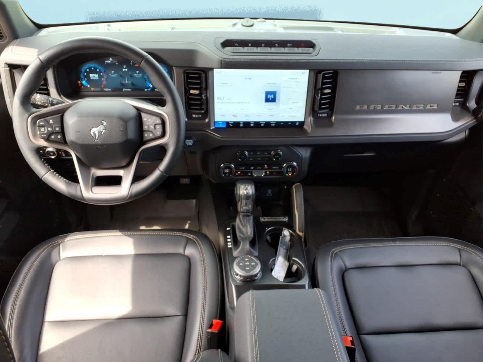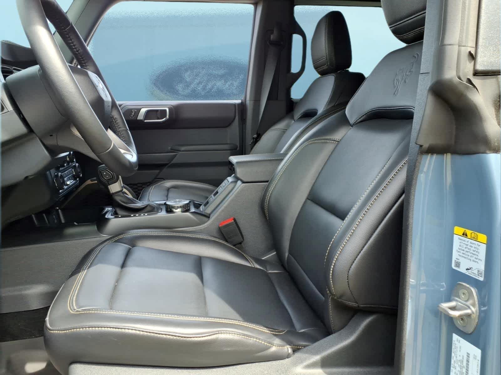 SASQUATCH PACKAGE Wheels: 17 Carbonized Gray Painted Aluminum, High Clearance Fender Flares, High Clearance Suspension, 4.7 Final Drive Ratio, electronic-locking front and rear axle, Tires: LT315/70R17 Rugged-Terrain, Position-Sensitive Bilstein Shock Absorbers, SHADOW BLACK PAINTED HARD TOP Hard Top Sound Deadening Headliner, Rear-Window Defroster & Washer, BLACK ONYX, LEATHER-TRIMMED/VINYL BUCKET SEATS: 10-way power driver seat, 8-way front passenger seat, second row armrest w/2 beverage holders and front driver/passenger seat back MOLLE strap system, Carpet flooring replaces the standard rubberized flooring, HOSS 3.0 W/FOX INTERNAL BYPASS DAMPERS, ENGINE: 2.7L ECOBOOST V6 GVWR: 6,180 lbs, TRANSMISSION: 10-SPEED AUTOMATIC remote start system, trail control, trail turn assist and trail one-pedal driving, 4.46 Axle Ratio, Rear HVAC, BLACK APPEARANCE PACKAGE: black appearance graphics package, Black-Painted Molded-In-Color Grille, white BRONCO lettering, Black Molded-In-Color Door Handles, Black Molded-In-Color Fender Flares, Black Molded-In-Color Sideview Mirror Caps, RAPTOR-STYLE RUNNING BOARD Replaces the standard rock rails, PAINT PROTECTION FILM: Custom accessory, pre-installed. Ford Badlands with Azure Gray Metallic Tri-Coat exterior and Black Onyx interior features a V6 Cylinder Engine with 315 HP at 5500 RPM*.