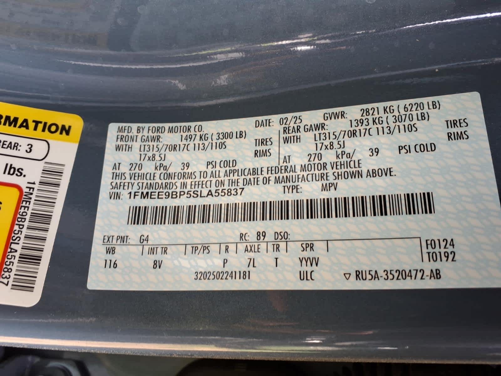 - Tires: LT285/70R17 A/T -inc: full size spare tire w/TPMS